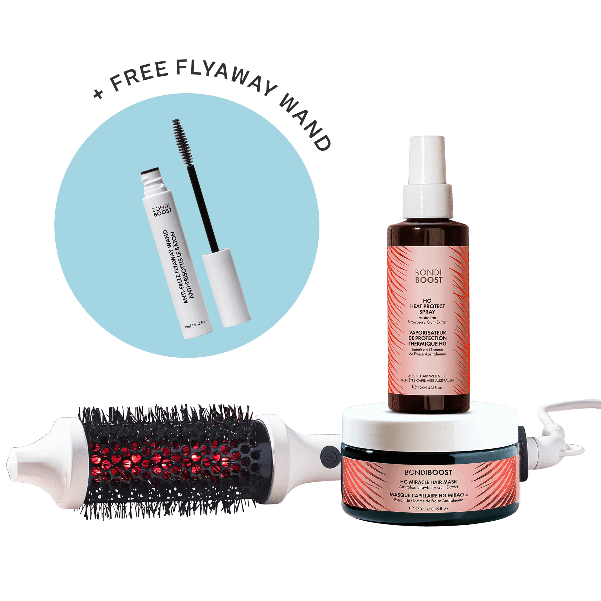 Your sweetest shine yet. The Strawberry Shine Bundle brings together our new Strawberry Gum Heat Protect Spray and Strawberry Gum Miracle Mask with the Infrared Thermal Bounce Brush for glossy, frizz-free, salon-worthy results.